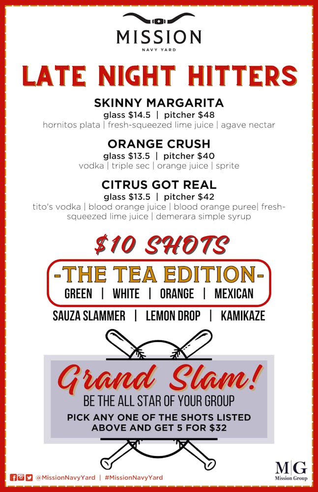Green Tea | White Tea | Orange Tea | Mexican Tea | Sauza Slammer | Lemon Drop | KamikazeGRAND SLAM!