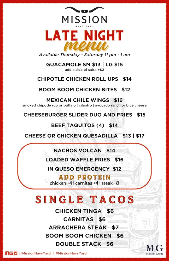 Thursday: 11pm – 1am Friday & Saturday: DJ & Drinks until 3am, late night food until 1am-